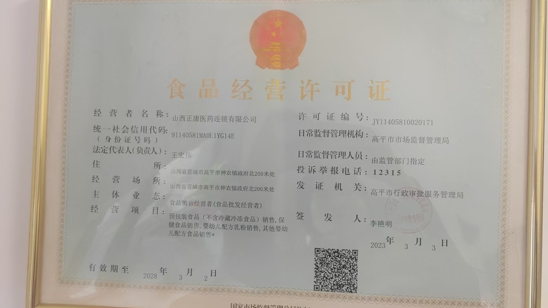 食品经营许可证