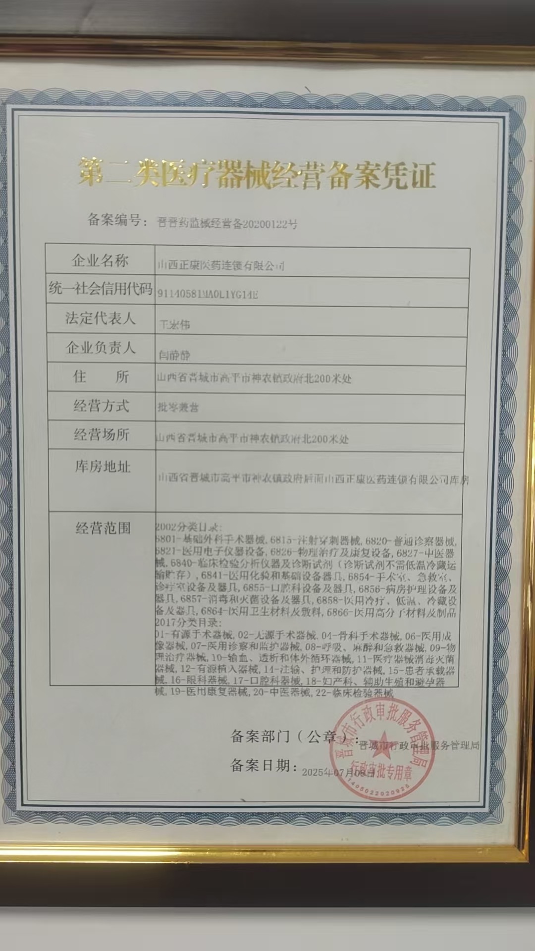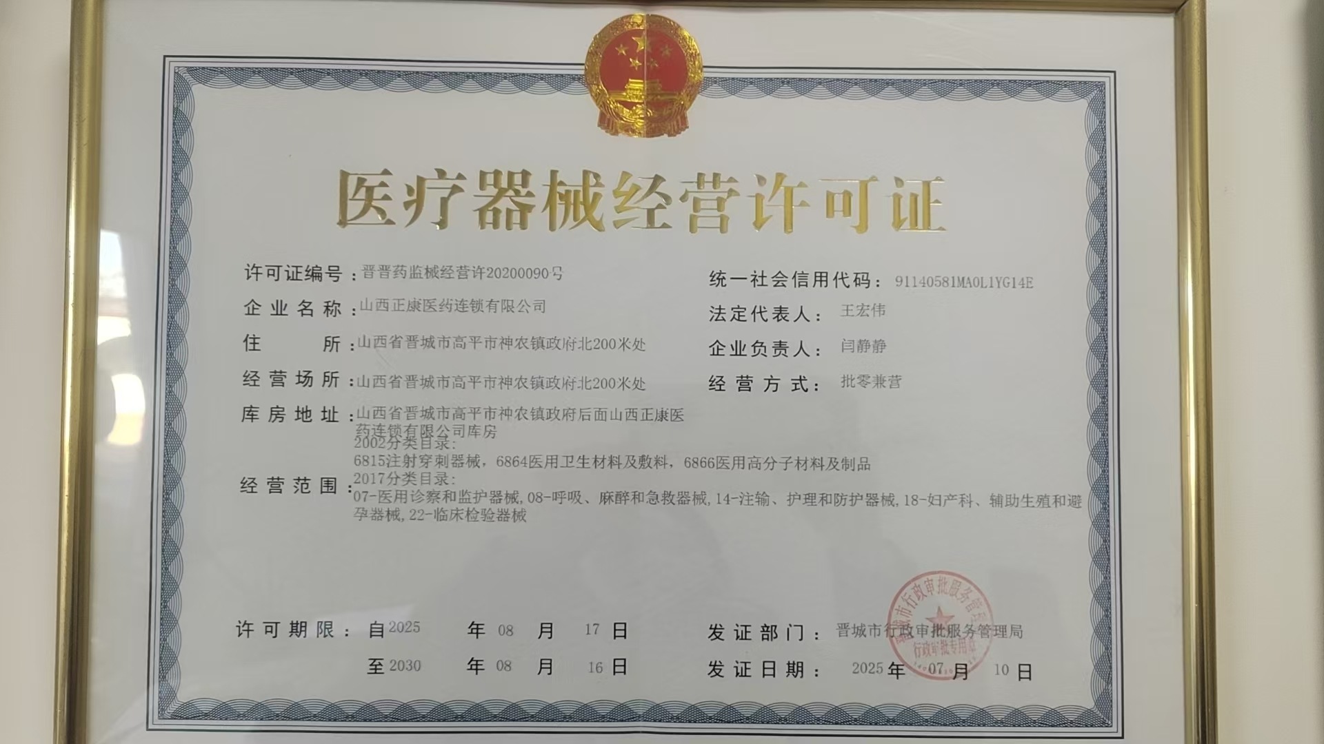 医疗器械经营许可证